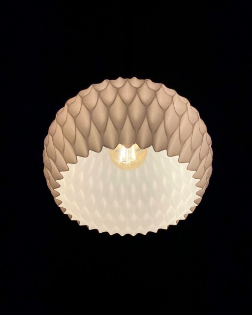 Med sitt distinkte mønster inspirert av naturens rytmer, bringer Wavy et harmonisk og moderne preg til ethvert interiør. Lampen er 3D-printet i Norge av biobasert – et miljøvennlig materiale som gjør hver lampe både bærekraftig og unik.