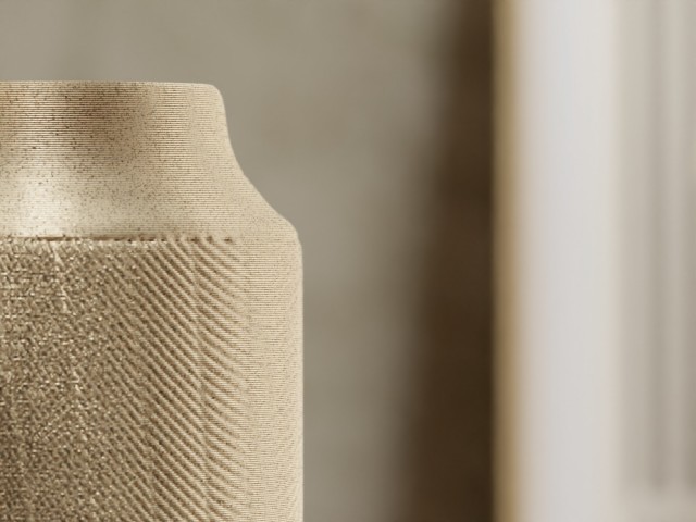 Vasen er 3D-printet i Norge med biologisk nedbrytbart PLA-materiale og bærer preg av både presisjon og bærekraft. Den er lett, men solid – og passer like godt til tørkede blomster som til dekor alene.